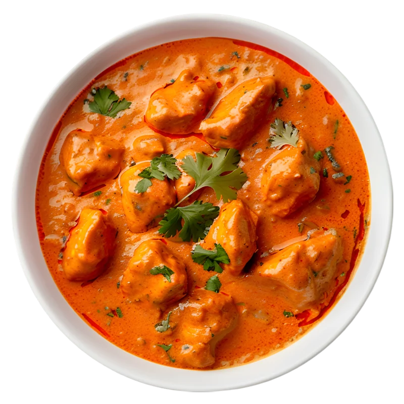 A rich and creamy curry made with tender chicken pieces cooked in a tomato and butter sauce.